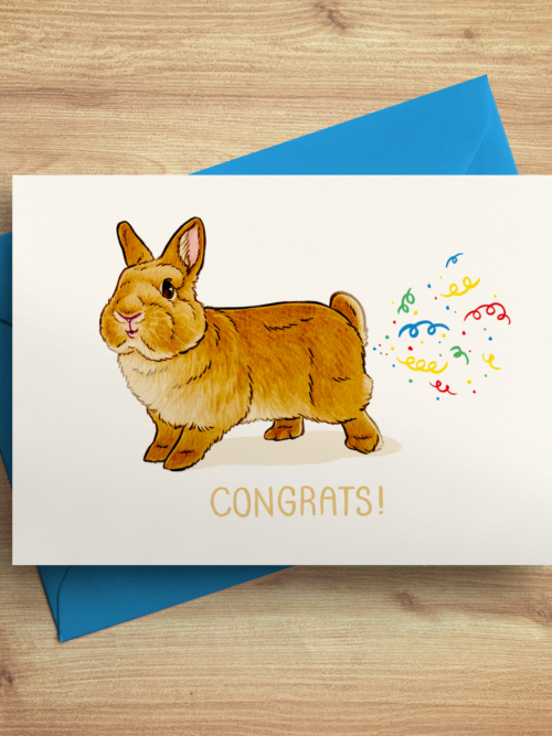 Klappkarte „Kaninchen mit roter Mütze“